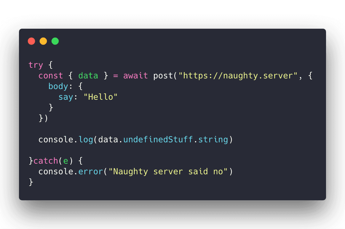 Async/await is great. Makes your code easier to read 👌 But the error handling ... oof 🙄