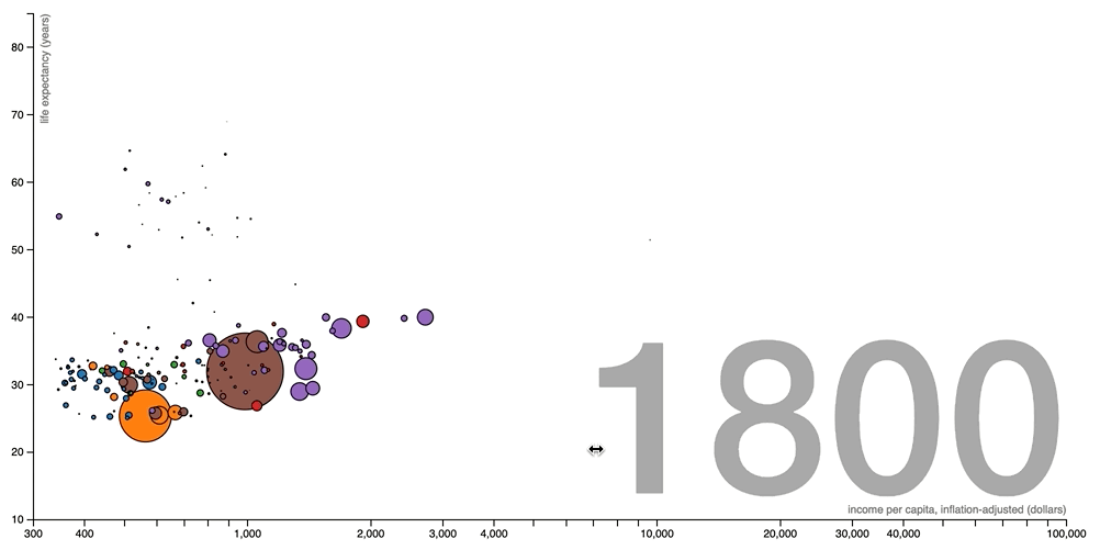 Hans Rosling's 2006 TED talk talks about this dataviz and it is amazing. You should watch it :)